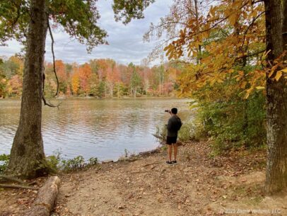 The peak of fall colors in the latter half of October was brief but spectacular, and I’m glad we scheduled a few local “field trips” for the sole purpose of soaking in the autumnal displays. One of our best activities was the Salem Lake hike, a 7-mile loop around a municipal lake that feels like a remote natural area despite being inside the city limits and a mere 4.5 miles from our home. But just driving around town running errands provided plenty of opportunities to see street trees and home landscapes cloaked in vivid colors. The devastation in Western North Carolina after Hurricane Helene meant that we did not participate in any leaf-looking in the mountains, but we hope to do so in 2025.